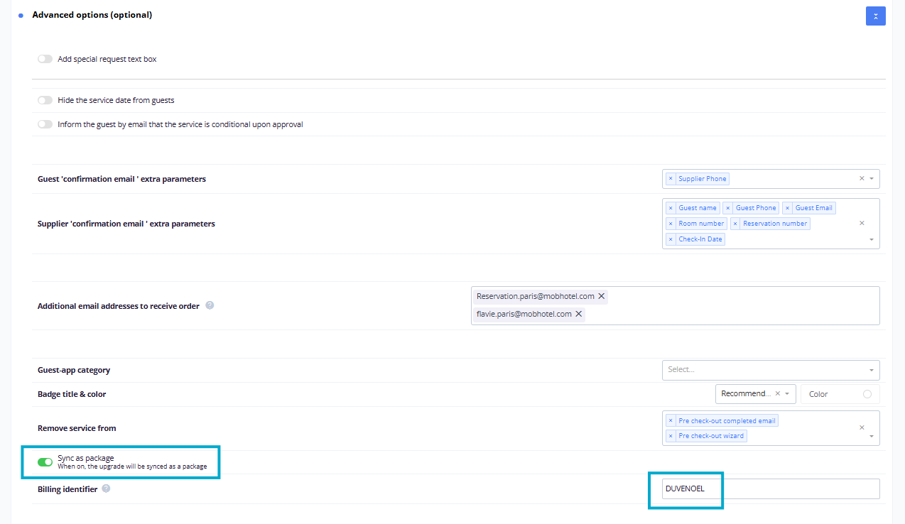 With this new feature, you can decide which upsell to sync to the PMS as a "package" or as a 'fixed Charge'.