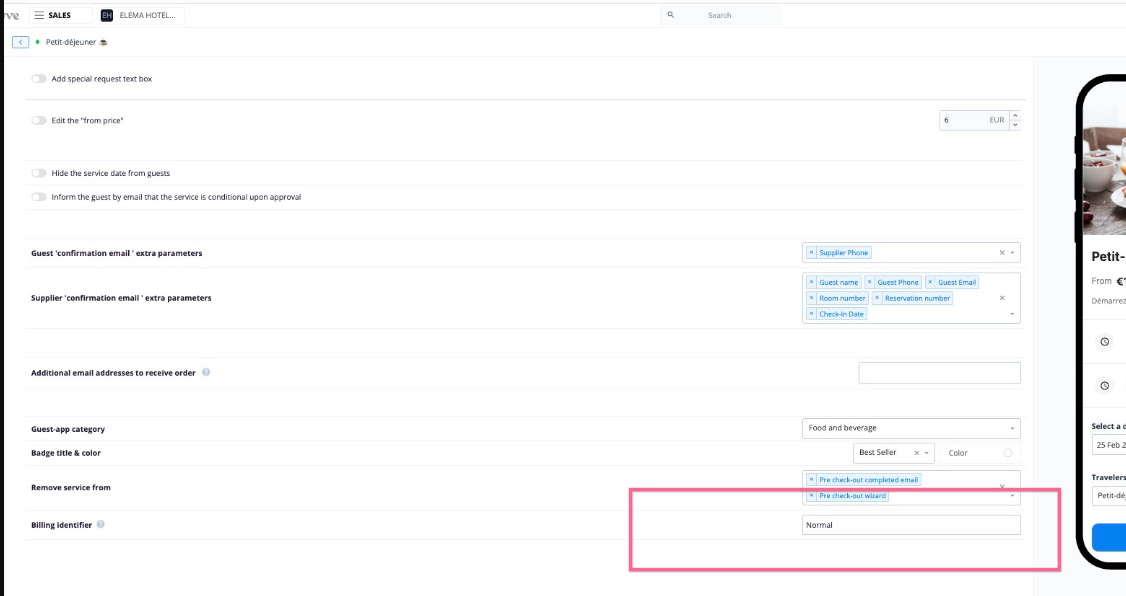 * Duve will push a VAT breakdown to Apaleo when a service is purchased as long as the VAT type is set as the Billing Identifier.