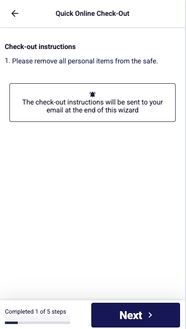 Step 3: Checkout Instructions page (skipped if there are no Checkout instructions on the rental/brand/account level)