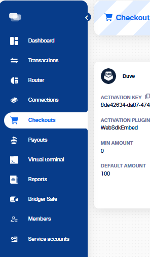 Create a Duve "Checkout" in the Bridgerpay interface: