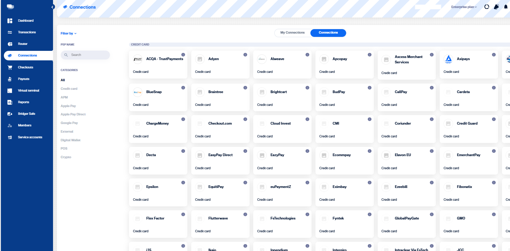 Here is a full list of all PSPs available under the integration with Bridgerpay: