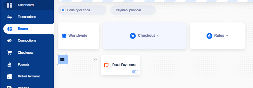 In the Bridgerpay dashboard, click the menu on the left and select "Checkout":