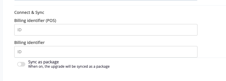 Billing Identifier - set up codes (transaction ID or package code) for sync back to PMS