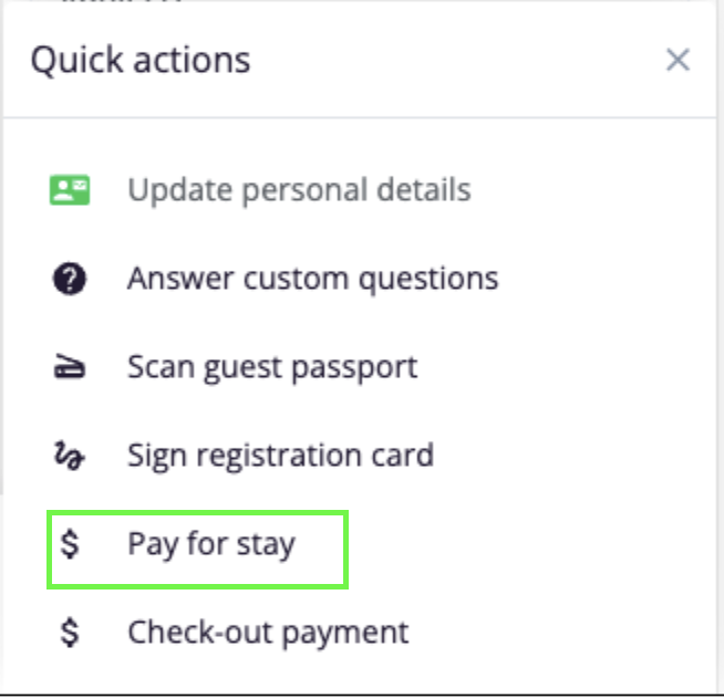 Use the new Quick Action: Sign Check-Out Payment (appears above “Check-Out Payment”).