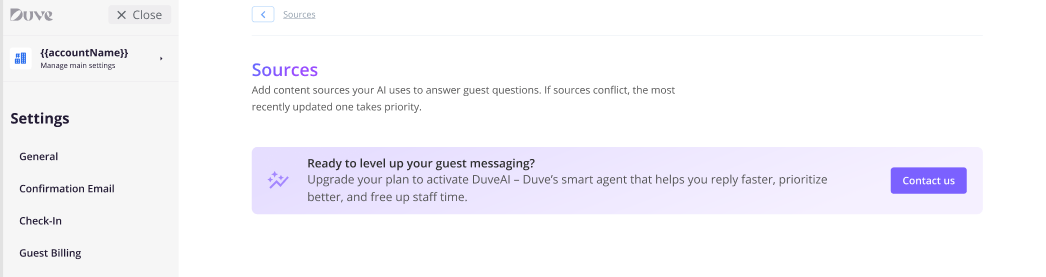 Go to Settings > DuveAI > Sources
