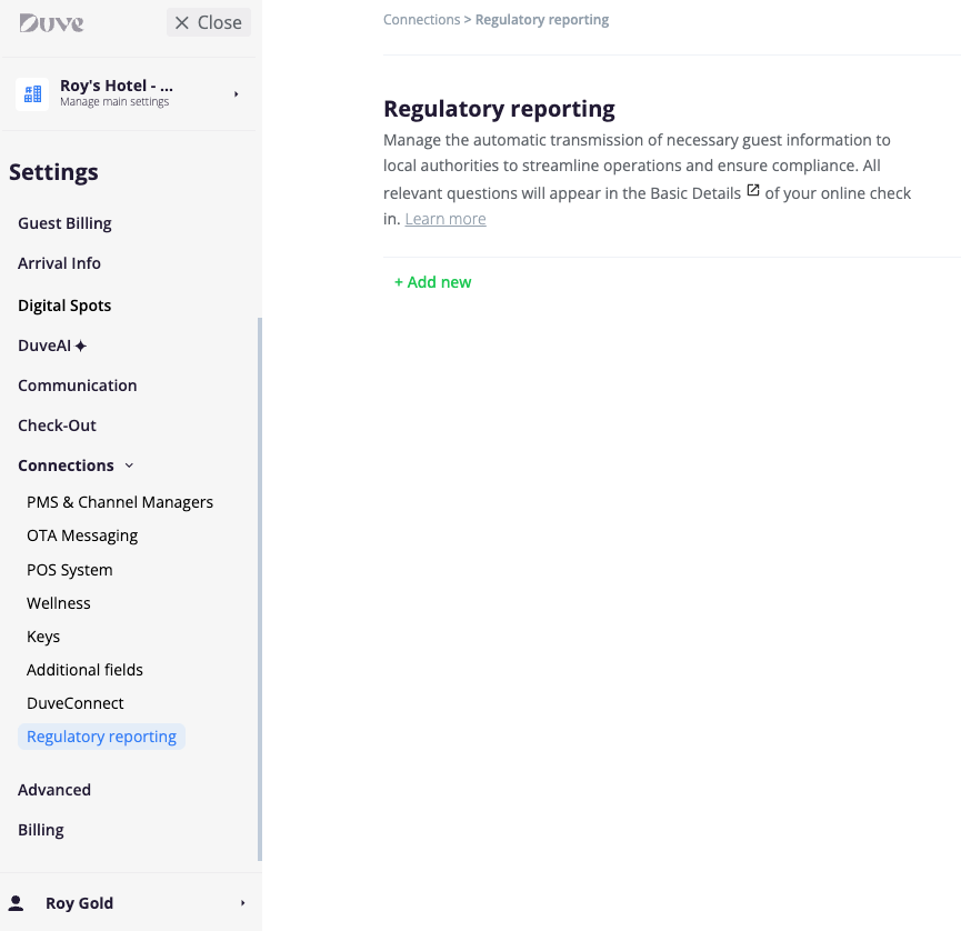 After the integration is configured, Duve automatically prepares and submits the required guest data, helping properties maintain compliance while reducing manual reporting work.