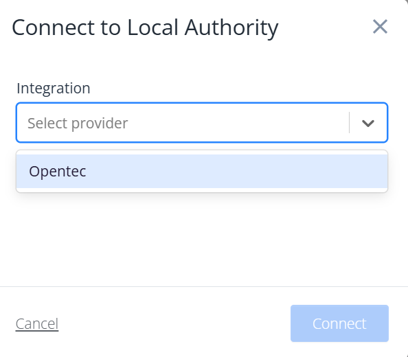 In the Provider dropdown, select Opentec