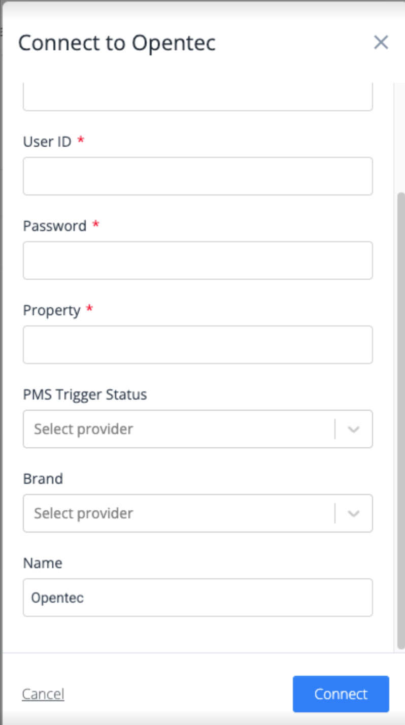 Note: Only one Opentec connection per brand can be created.