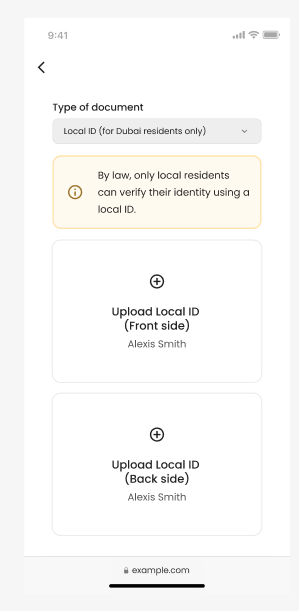 Guests who are Dubai residents can upload their UAE Emirates ID.
