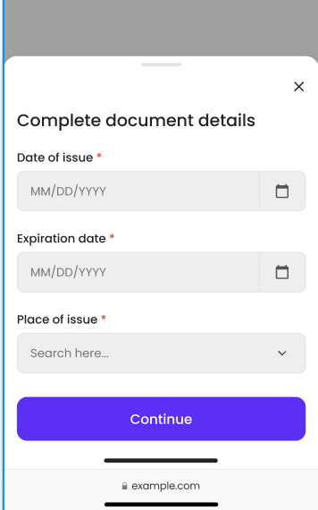 After a successful document scan, guests will be asked to provide additional document details: