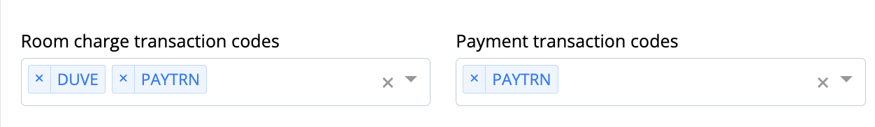Add the Room Charge or Transaction Codes for Duve to charge in the Guest Billing - Payment for Stay
