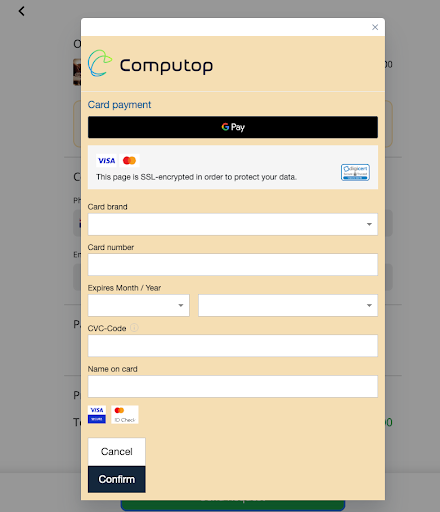 When a guest purchases an upsell, the iFrame will automatically open, where the guest will enter their credit card information and confirm the transaction.