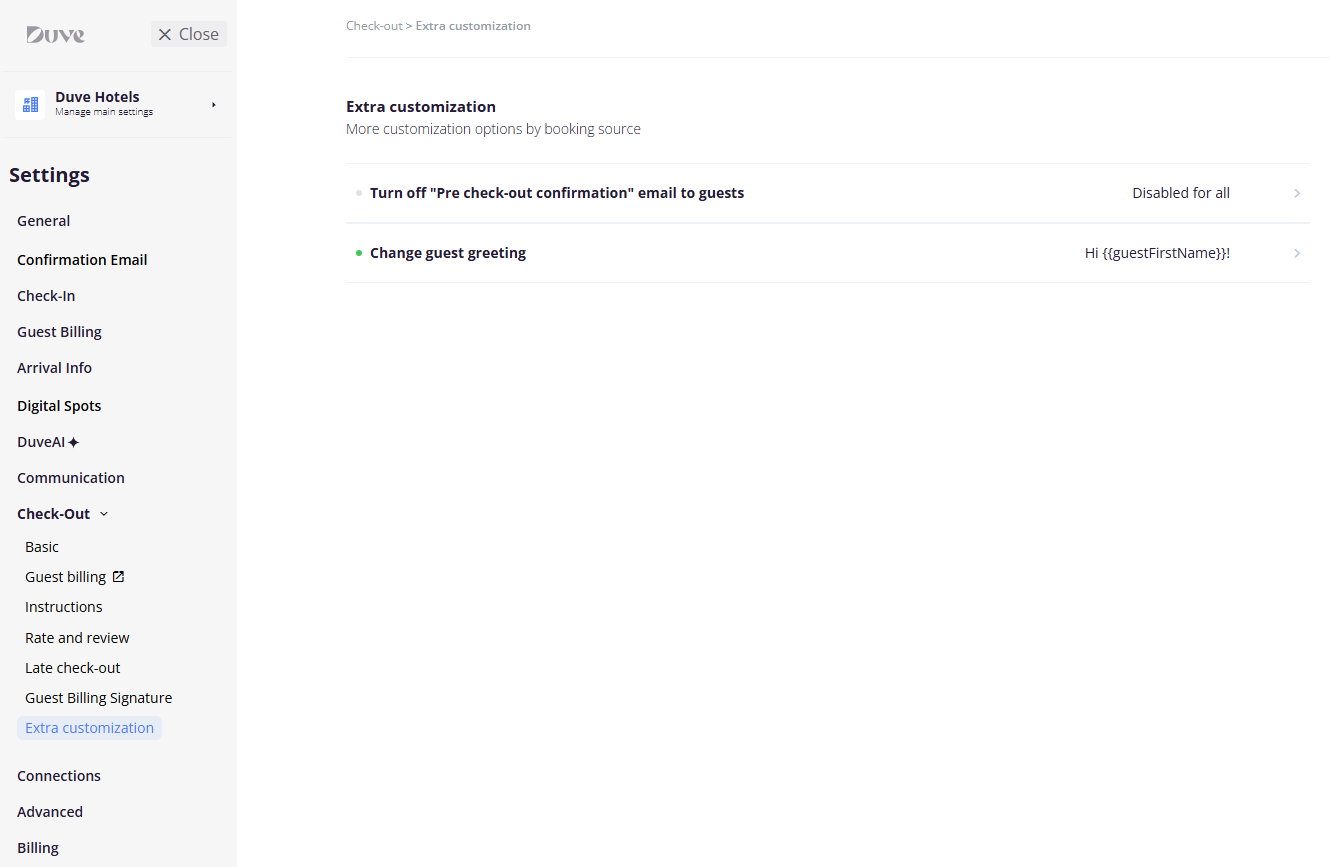 Turn off "Pre check-out confirmation" email to guests
