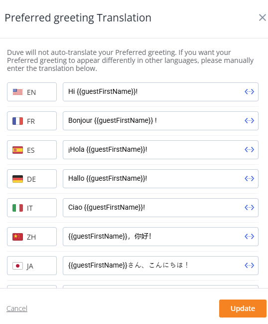 If you would like to have your Preferred greeting in other languages, please manually enter the translation.