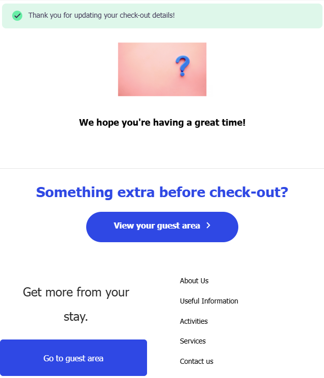 Once the guest has updated their check-out details, they will recieve a confirmation email.