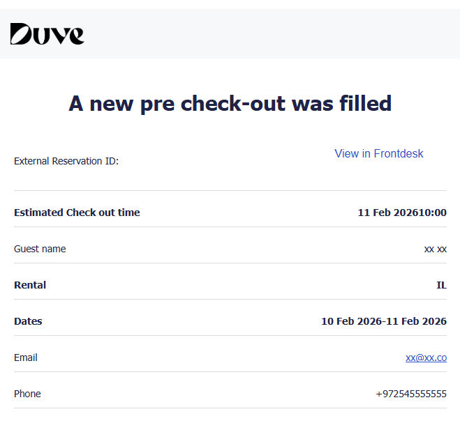 Once the guest has updated their check out details, the host will receive an email with the guest's checkout details.