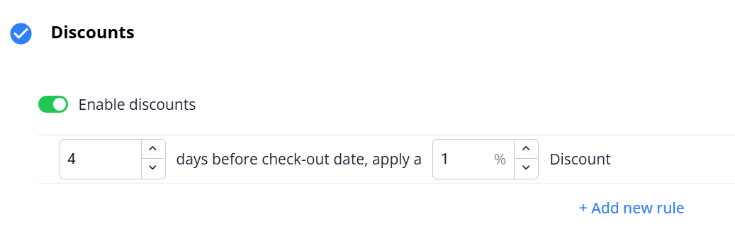 You can set how much discount the guest will receive, depending on how many days before the check-out service will be booked.