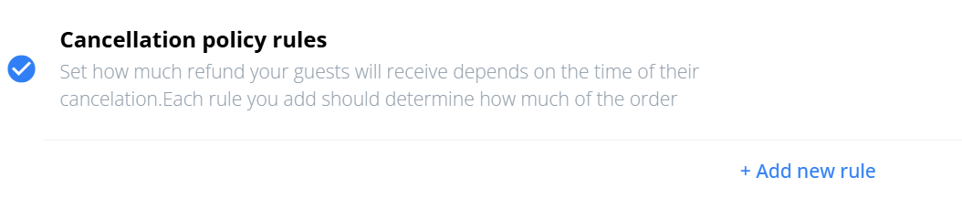 Set how much refund your guest will receive depending on the time of their cancelation. If no rule is set, the service will be 100% non-refundable.