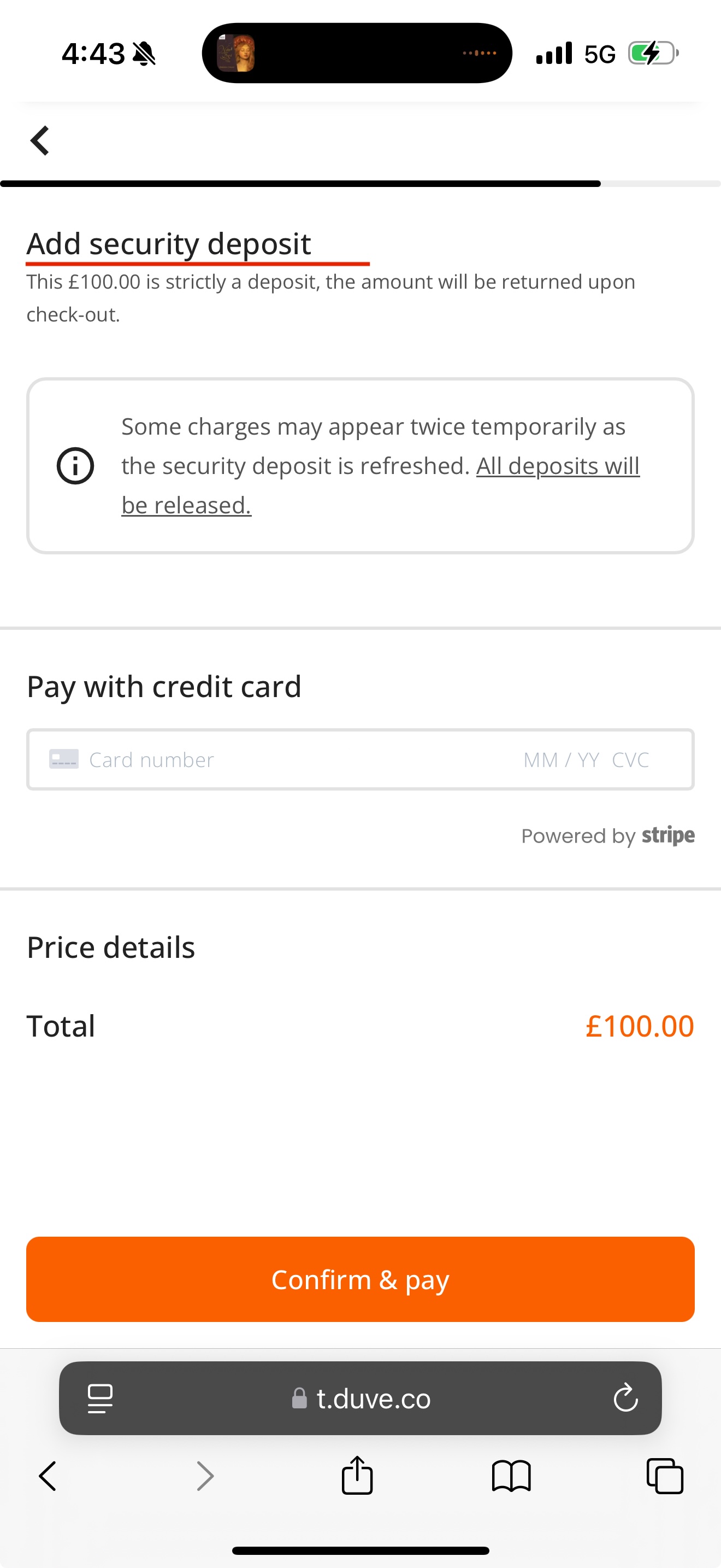 Additional Stripe or Payoneer fees apply only when the deposit is claimed from the guest, and is non refundable.